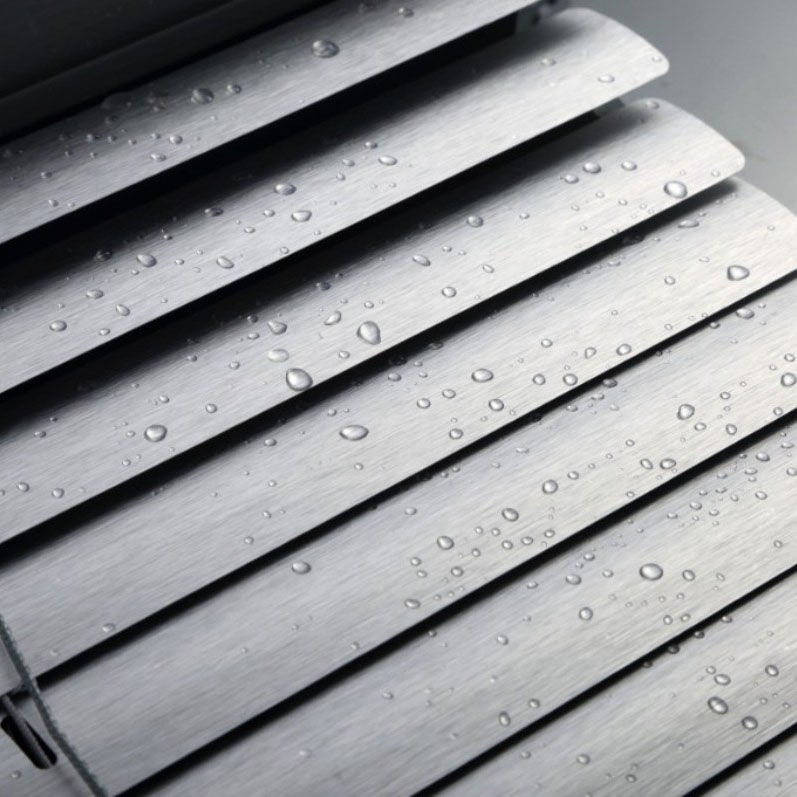 Die Jalousien aus chinesischer Aluminiumlegierung von Futai bestehen aus einer hochwertigen Aluminiumlegierung. 3 Materialschichten machen die Jalousien stärker und weniger anfällig für Verformungen. Die C-förmige Lamelle sorgt für eine bessere Beschattung und Wasserdichtigkeit. Im Vergleich zu Vinyljalousien ist Aluminium selbst fein strukturiert, stark und verschleißfest, wodurch es verschleiß- und verformungsbeständig ist. Es widersteht täglichen Stößen und Kratzern und behält seinen ästhetischen Reiz auch nach längerem Gebrauch.
